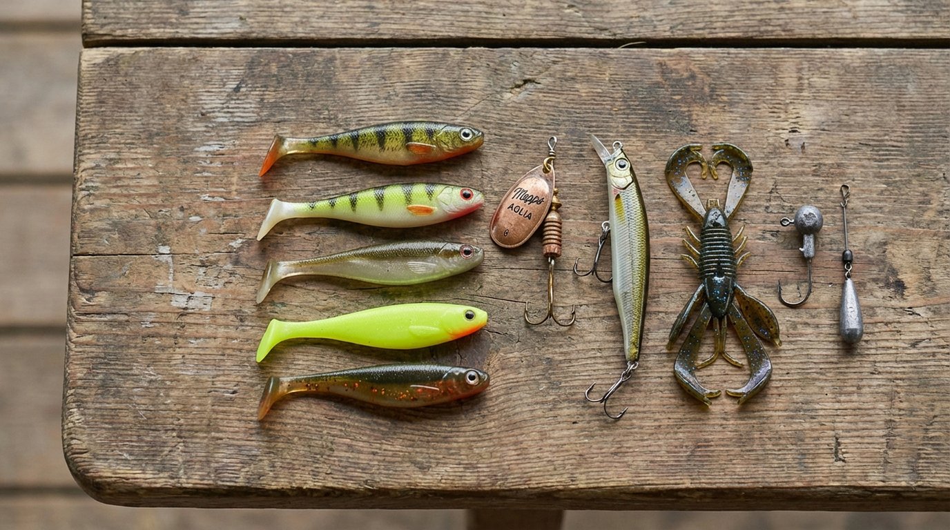 Wenn du nur drei Köder mitnehmen darfst, nimm diese: einen Gummifisch am Jigkopf (5–7 cm, natürliche Farbe), einen Spinner in Größe 2 und einen kleinen Twitchbait. Mit dieser Kombination deckst du 90 % aller Situationen ab – egal ob du an der Havel, am Baggersee oder am Vereinsteich stehst.